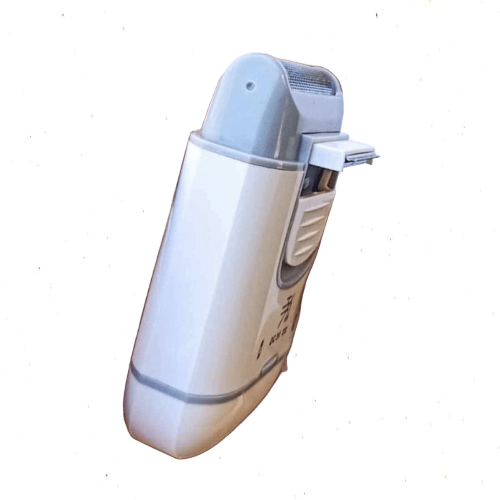 ماكينة تنعيم محمولة للذقن بتصميم خفيف وعملي. مناسبة للاستخدام السريع والسفر تعمل ببطاريات جافة لسهولة تغييرها .