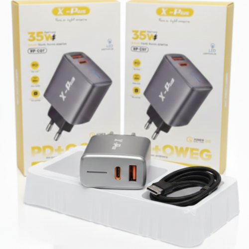 شاحن X-Plus يوفر شحن سريع وآمن بقدرة 35 وات مع دعم منفذين USB وType-C لتشغيل أكثر من جهاز.